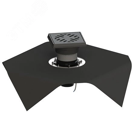 трап вертикальный дворовый регулируемый тп-616.1.110в-э с выходным диаметром 110 мм, с прижимным фланцем, чугунной решеткой и подрамником, с битумно-полимерной прокладкой и обогревом
