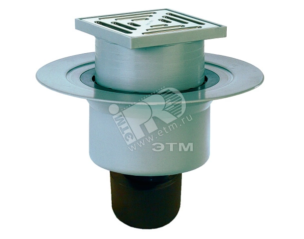 Трап для внутренних помещений DN50/75/110 вертикальный с обжимным фланцем, запахозапирающим устройством, песколовкой, со снимаемыми насадными подрамниками 20 - 70 мм / 147 х 147 мм и решеткой из нержавеющей стали 138 х 138 мм. Строительная защита во время монтажа в комплекте.