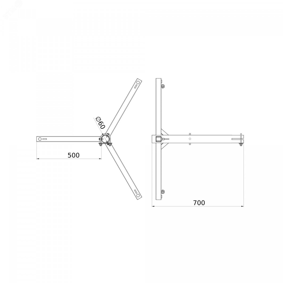 Тренога применяется для установки 5-7-метровых молниеприемных мачт на бетонных основаниях. Материал - горячеоцинкованная сталь.