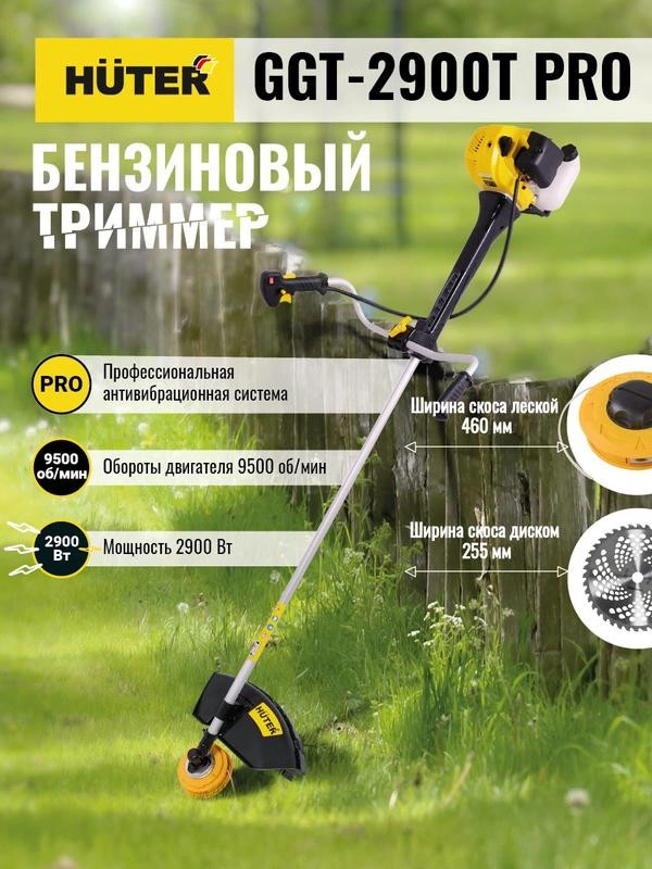 Полное описание: Триммер бензиновый GGT-2900T PRO (с антивибрационной системой) HUTER 70/2/30