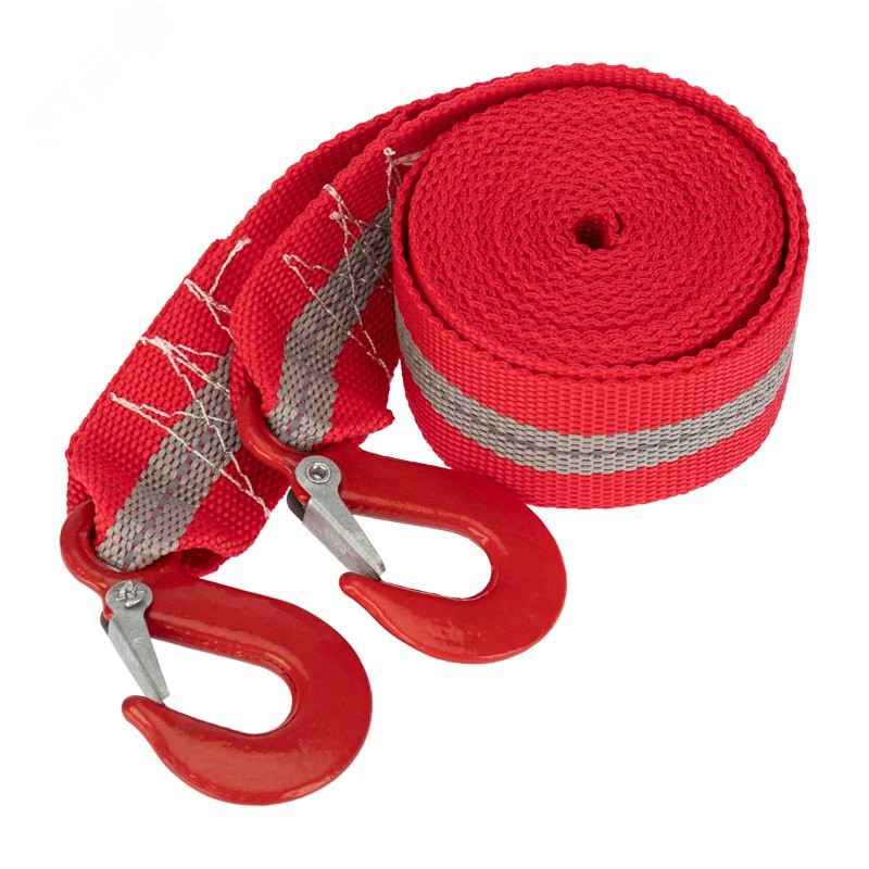 Трос буксировочный со светоотражающей лентой, 5 т, 4 м, с двумя крюками, в чехле