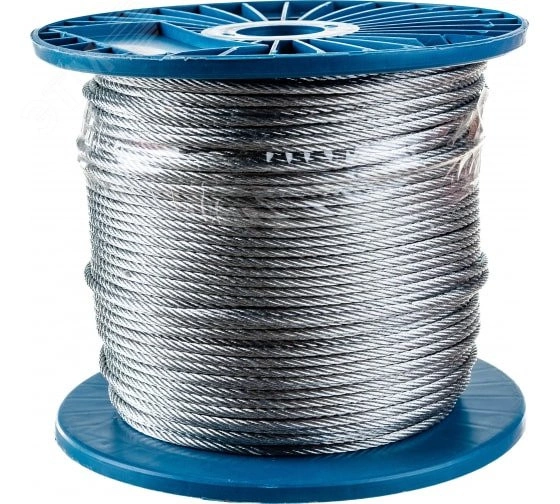 Трос (канат) стальной без оплетки ПВХ, из оцинкованной проволоки, c органическим сердечником. Конструкция троса (6х7) состоит из 6-ти прядей по 7 проволок в каждой. Применятеся для крепежных операций. Поднимать груз данным тросом запрещено.