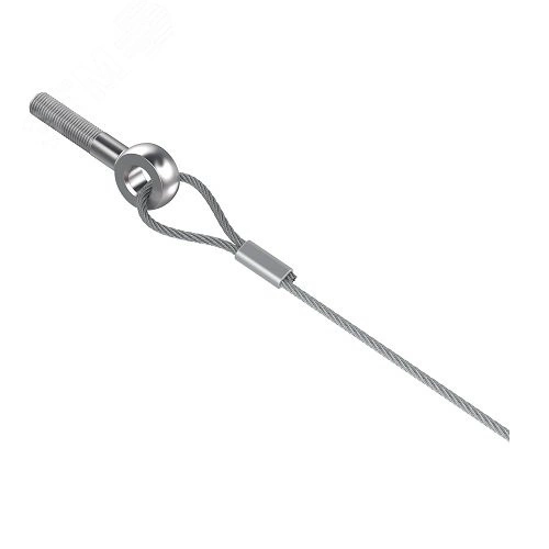 Трос оцинкованный с болтом М6 и замком, выполеннный из предварительно оцинкованного металла, предназначен для быстрого монтажа проволочных и лотков легкой серии внутри помещений, может также применятся для монтажа осветительных приборов. Резьбовое соединение обеспечивает быстрый монтаж к поверхности с предварительно подготовленной рерьбой соответствующего диаметра.