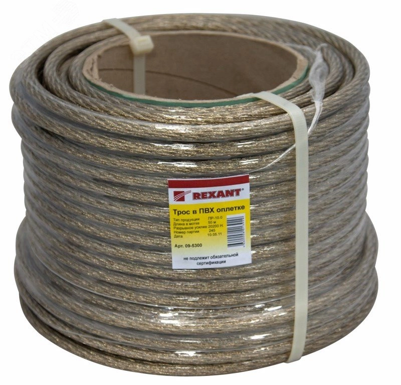 Трос стальной в ПВХ оплетке d=10.0 мм. прозрачный (катушка 50 м)