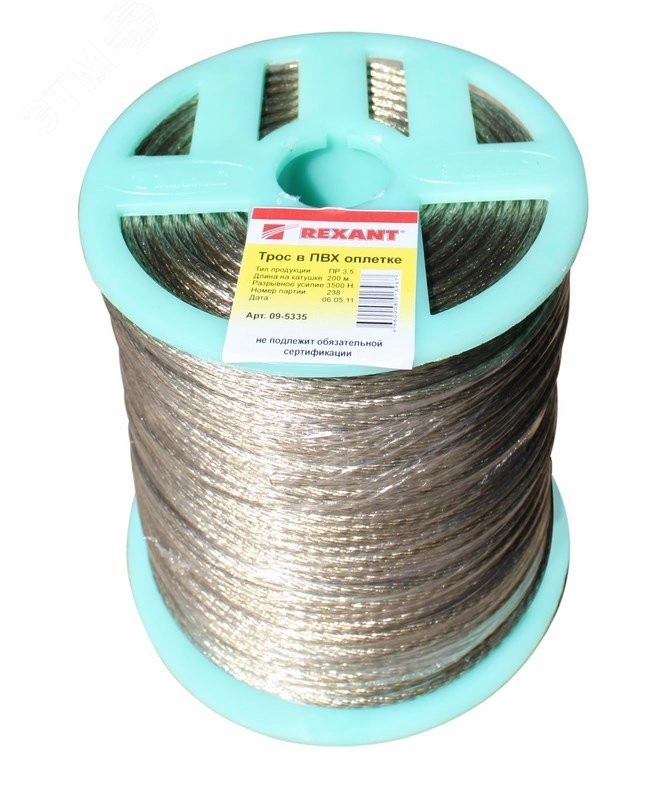 Стальной трос с полимерным покрытием, свивается из высокоуглеродистой стальной проволоки (латунированной с высоким содержанием углерода) и покрывается ПВХ, выдерживая перепады температуры от –60 до +110 градусов Цельсия. при этом не сказываются на эластичности троса. Диапазон температур от –40 до + 50 градусов Цельсия. Покрытие троса обеспечивает срок службы более 25 лет, при условии отсутствия механических повреждений покрытия. Пластикат, используемый для покрытия троса, является экологически чистым материалом и абсолютно безопасен для человека и животных. Выдерживает нагрузку от 800 до 45000 Н (от 80 кг до 4,5 т).