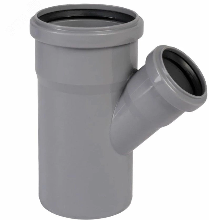 Тройник канализационный предназначен для монтажа разветвления трубопроводов в системах внутренней канализации, используется для разделения единого потока жидкости на два направления в одной плоскости. В качестве уплотнителей используются резиновые кольца манжетного типа.