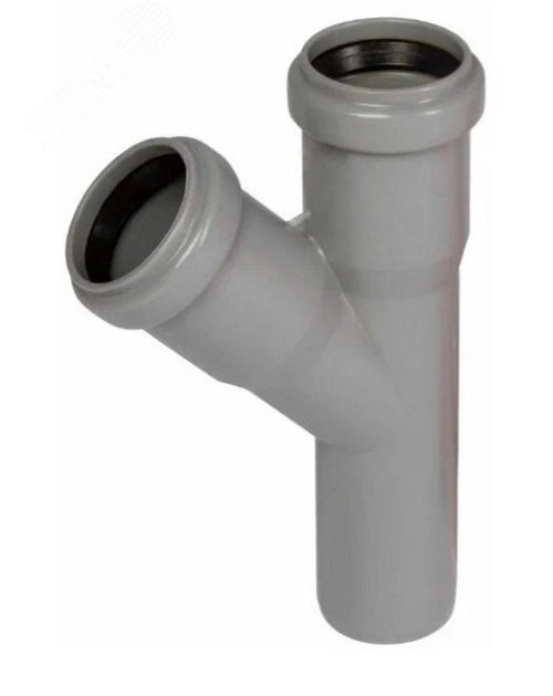 Тройник канализационный  предназначен разветвления трубопроводов под углом 45 градусов одного диаметра в системах внутренней канализации.
