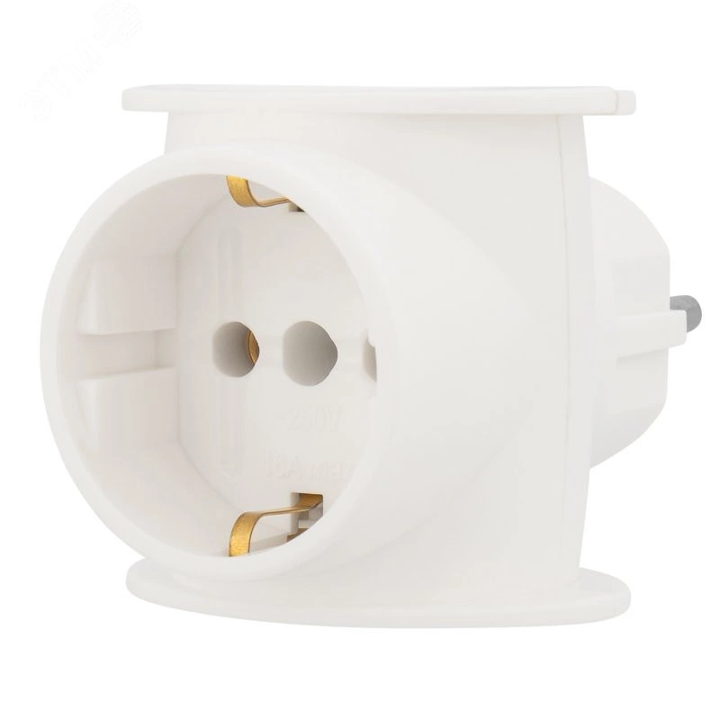 Тройник электрический универсальный 16 А одно гнездо с заземлением белый