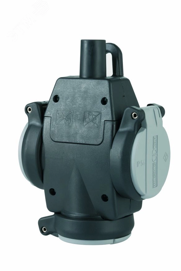 Тройник из натуральной резины кабельный с крышками IP54 16A 2P+E 250V, чёрный/серый