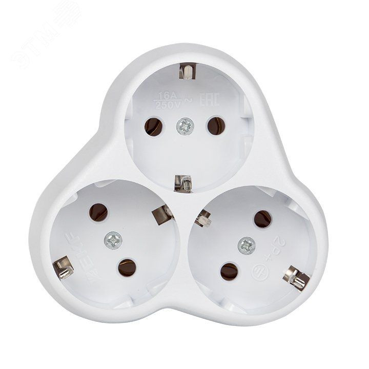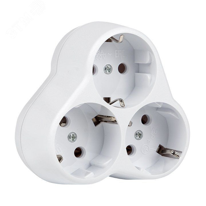 Тройник на 3 гнезда с заземлением круглый 16А