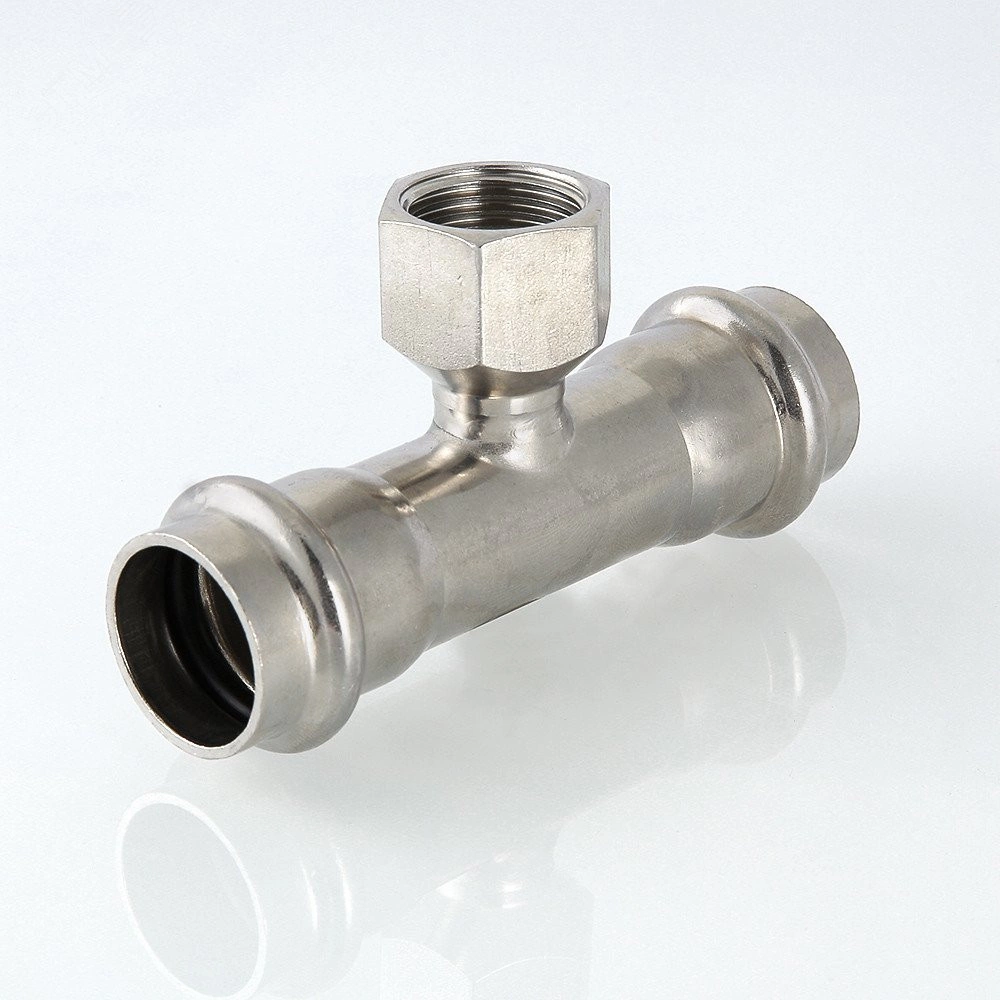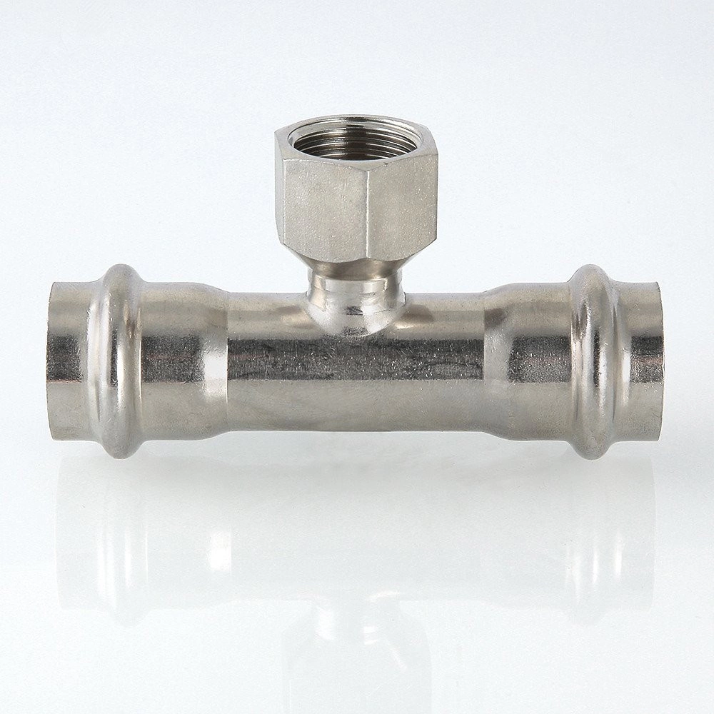 "Пресс-тройник из нержавеющей стали с внутренней резьбой предназначен для соединения тонкостенных стальных труб с резьбовым элементом системы водоснабжения, отопления, других инженерных и технологических установок. Фитинг рассчитан на эксплуатацию при максимальной рабочей температуре 120 градусов. Номинальное давление - 16 бар.