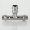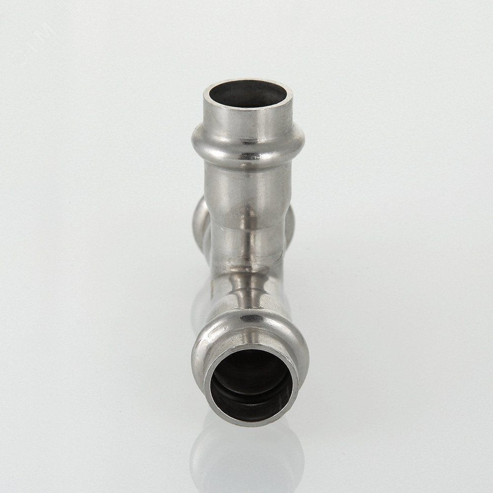 "Трехраструбный пресс-тройник из нержавеющей стали обеспечивает соединение трех тонкостенных стальных труб систем водоснабжения, отопления, иных инженерных и технологических установок с рабочей температурой до 120 градусов и давлением до 16 бар. Изделие изготовлено из стали AISI 304. Материал уплотнительных колец - эластомер EPDM. Отдельно можно приобрести уплотнительные кольца из FPM (витон), в этом случае максимальная рабочая температура увеличивается до 140 градусов.