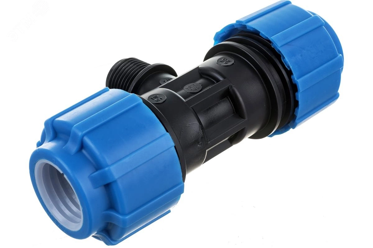 Тройник с наружной трубной резьбой компрессионный является универсальной деталью полиэтиленового (ПНД) трубопровода имеющий внутреннюю резьбу с шагом, соответствующим стандартным размерам стальных труб. Благодаря этому тройник можно использовать для перехода с ПНД трубы на стальную и наоборот. Широкая линейка диаметров - от 20 до 110 мм. Материал - полиэтилен.