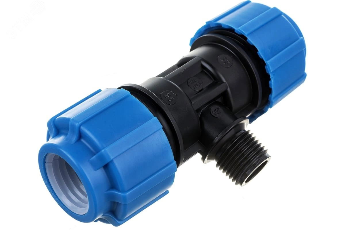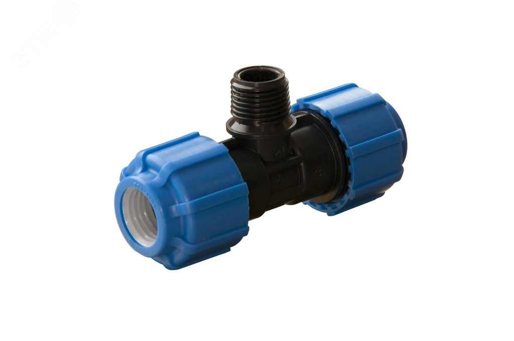 Тройник с наружной трубной резьбой компрессионный является универсальной деталью полиэтиленового (ПНД) трубопровода имеющий внутреннюю резьбу с шагом, соответствующим стандартным размерам стальных труб. Благодаря этому тройник можно использовать для перехода с ПНД трубы на стальную и наоборот. Широкая линейка диаметров - от 20 до 110 мм. Материал - полиэтилен.