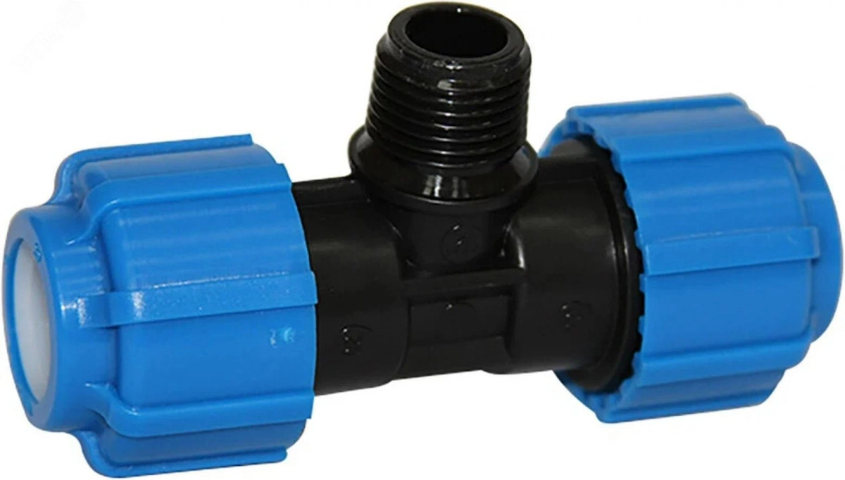 Тройник с наружной трубной резьбой компрессионный является универсальной деталью полиэтиленового (ПНД) трубопровода имеющий внутреннюю резьбу с шагом, соответствующим стандартным размерам стальных труб. Благодаря этому тройник можно использовать для перехода с ПНД трубы на стальную и наоборот.
