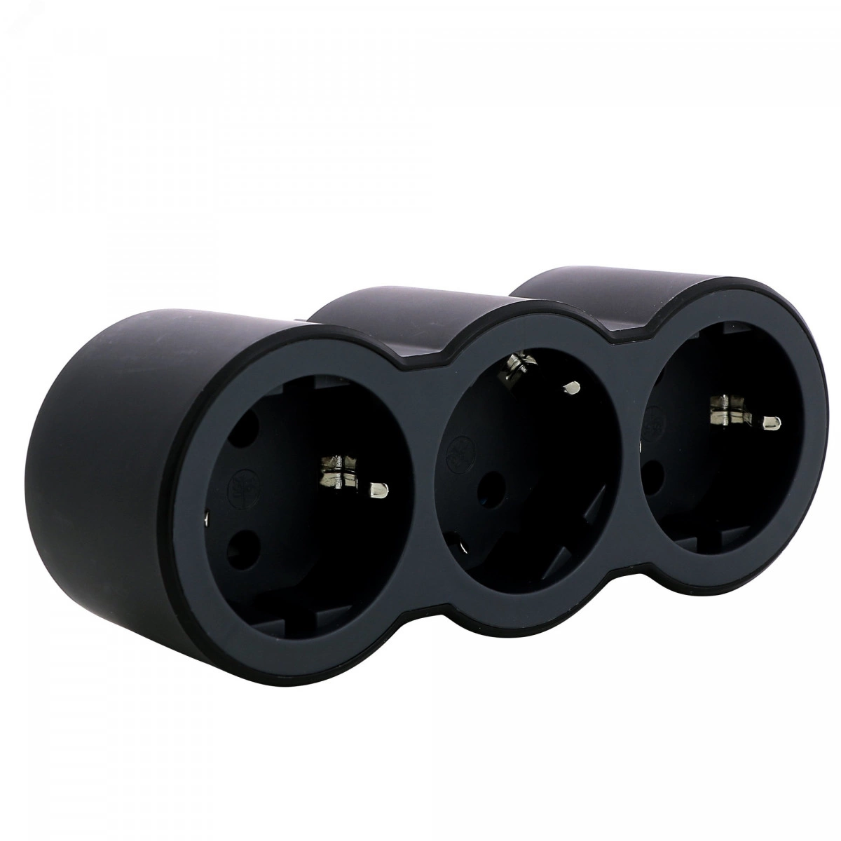Тройник с фронтальными розетками серии Стандарт 3 х 2К+З, цвет: черный