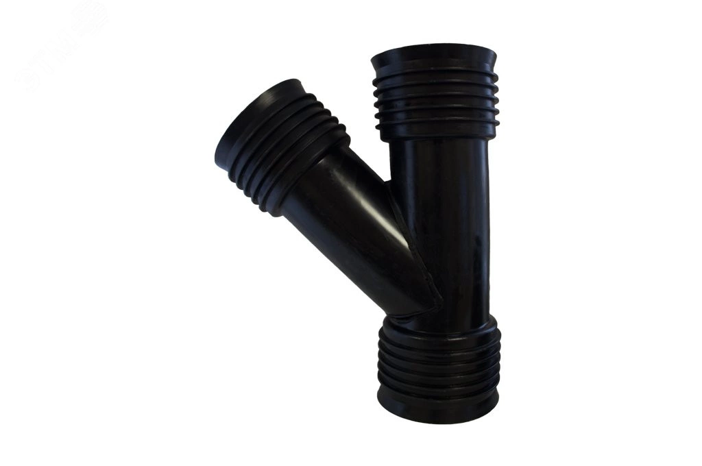 Тройники равнопроходные предназначены для подключения к гофрированному двухслойному трубопроводу диаметром 100, 150, 200, 250 и 315 мм дополнительного ответвления под различными углами (45 и 90 градусов).Концы тройника имеют наружную резьбу. Подключаемый участок трубопровода имеет диаметр равный диаметру прохода тройника. Материал тройника - полиэтилен с высокой стойкостью к абразивному износу. Тройники равнопроходные должны эксплуатироваться в интервале температур от 0?С до 40?С.