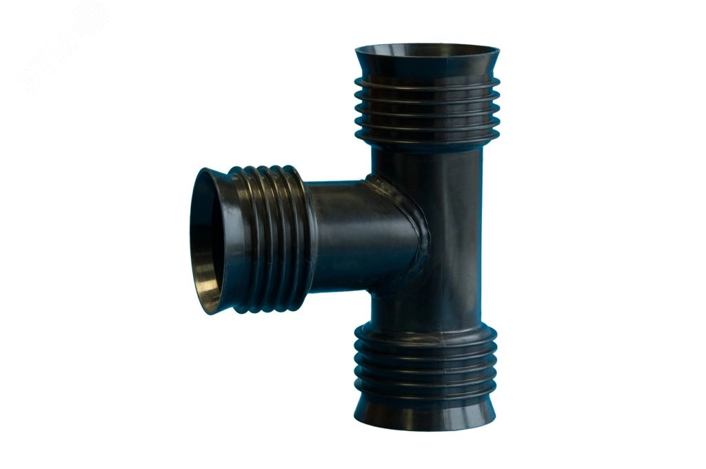 Тройники равнопроходные предназначены для подключения к гофрированному двухслойному трубопроводу диаметром 100, 150, 200, 250 и 315 мм дополнительного ответвления под различными углами (45 и 90 градусов).Концы тройника имеют наружную резьбу. Подключаемый участок трубопровода имеет диаметр равный диаметру прохода тройника. Материал тройника - полиэтилен с высокой стойкостью к абразивному износу. Тройники равнопроходные должны эксплуатироваться в интервале температур от 0?С до 40?С.