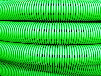 Труба гофрированная двустенная ПНД гибкая дренажная d200мм без фильтра SN6 перфорация 360град. зел. (уп.35м) DKC 140920