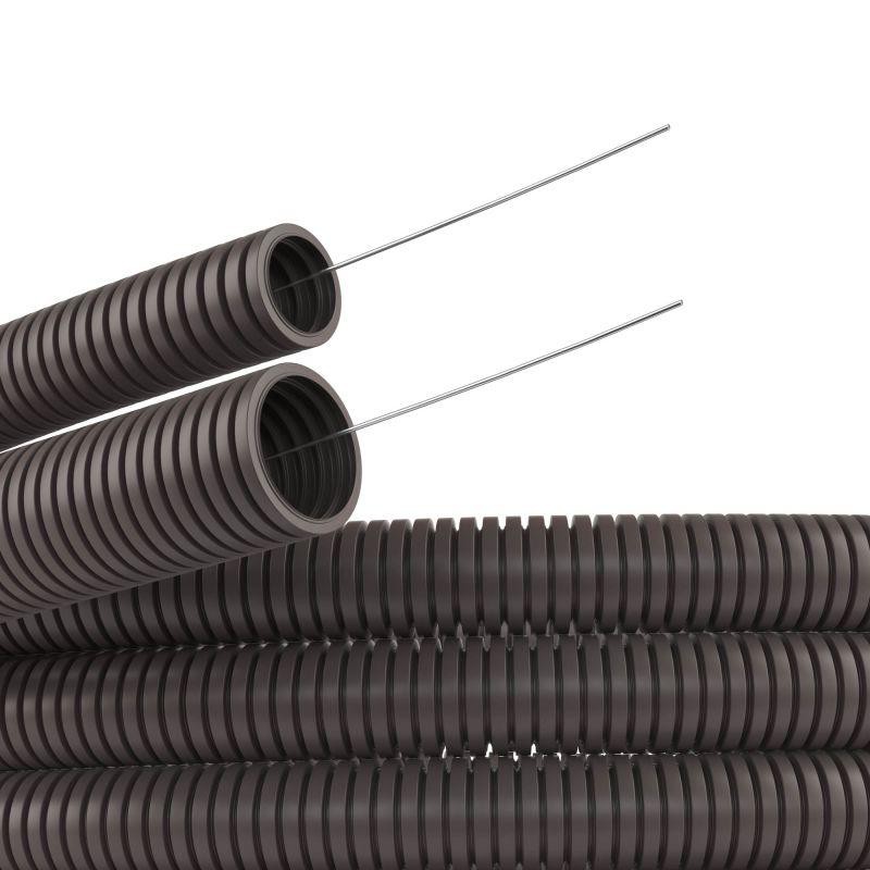 Труба гофрированная ПА 6 d23мм ПВ-0 Dвн.22.6мм Dнар.28.5мм с протяжкой темн. сер. (уп.50м) DKC PA612329F0