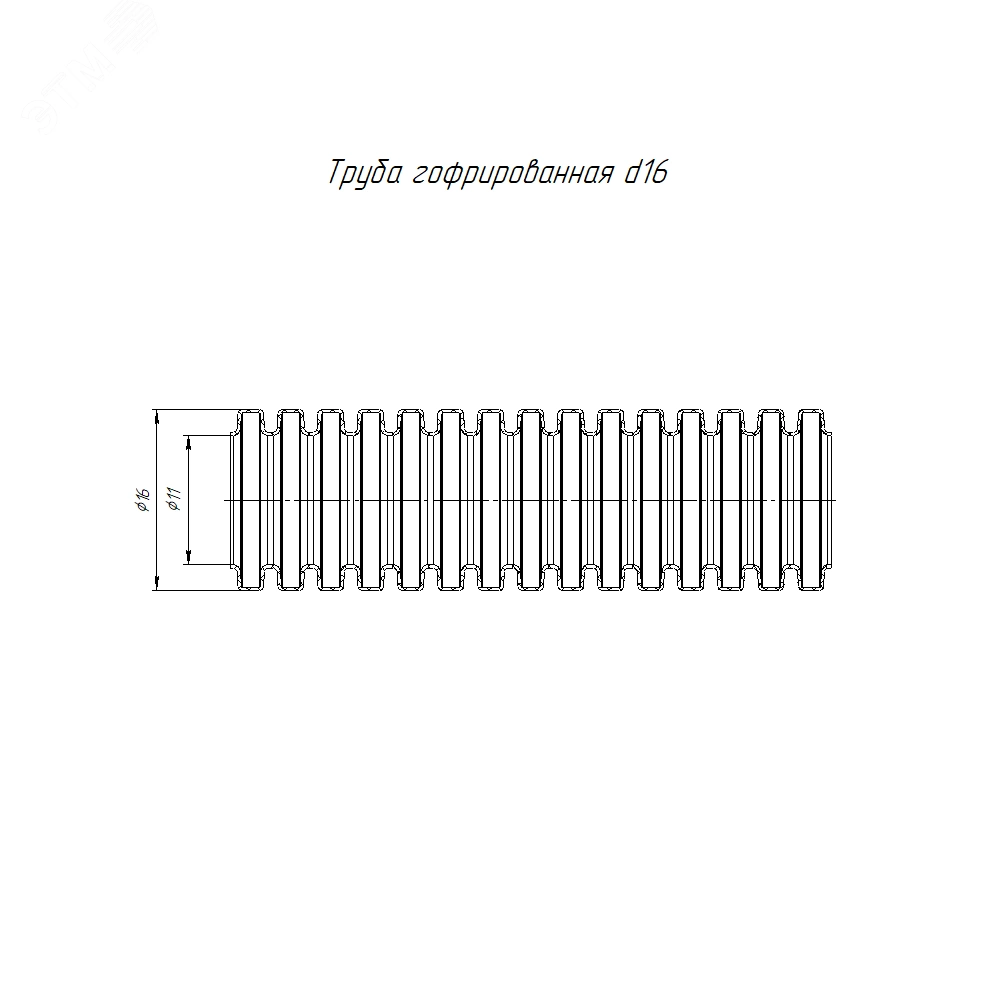 Труба гофрированная ПА негорючая (НГ) стойкая к ультрафиолету (УФ) черная с/з d16 мм (10м/уп)