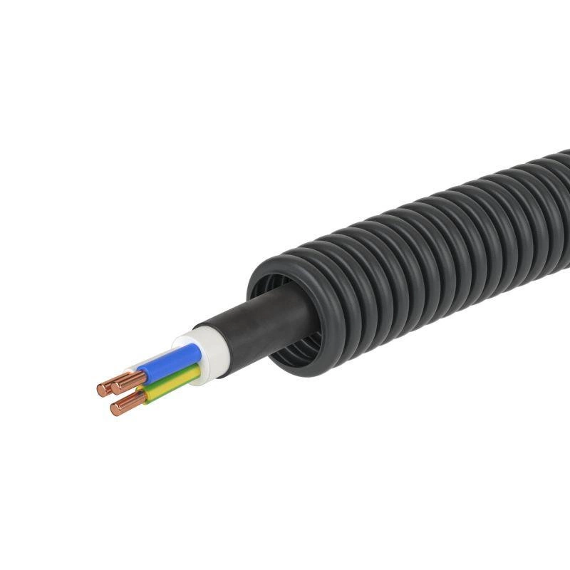Труба гофрированная ПНД гибкая d16мм с кабелем ВВГнг(А)-LS 2.5х3 РЭК ГОСТ+ черн. (уп.50м) DKC 7S71650