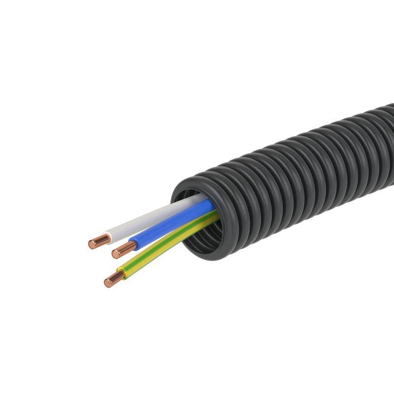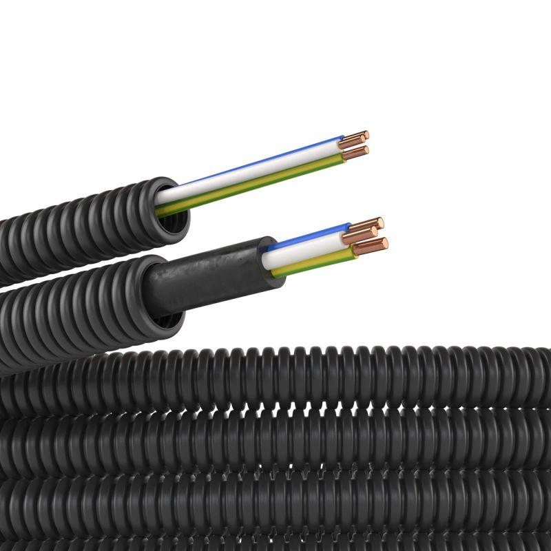 Труба гофрированная ПНД гибкая d16мм с проводом ПВ-1 (ПуВ) 2.5х3 РЭК ГОСТ+ черн. (уп.50м) DKC 7V71650