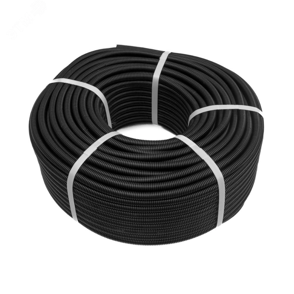 Труба гофрированная ПП легкая 350 Н безгалогенная (HF) стойкая к ультрафиолету черная dвн 9,8 мм, dнар 13,2 мм (100м/уп) Промрукав