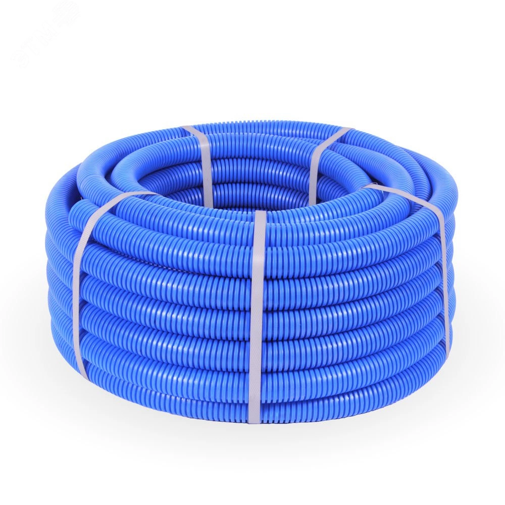 Гофрированные трубы из полипропилена одно из лучших средств защиты изолированных проводов и кабелей от механических повреждений и агрессивного воздействия окружающей среды при прокладке сложных систем и трасс. Применяются для скрытой и открытой прокладки в несущих и ограждающих конструкциях из несгораемых материалов жилых, административных и производственных зданий и сооружений. Труба соответствует требованиям пожарной безопасности. Допускается заливка в бетон. Тип - Тяжелая. Исполнение - не распространяющая горение. Протяжка (зонд) - стальная проволока. Цветовое исполнение - RAL 5005 (синий).