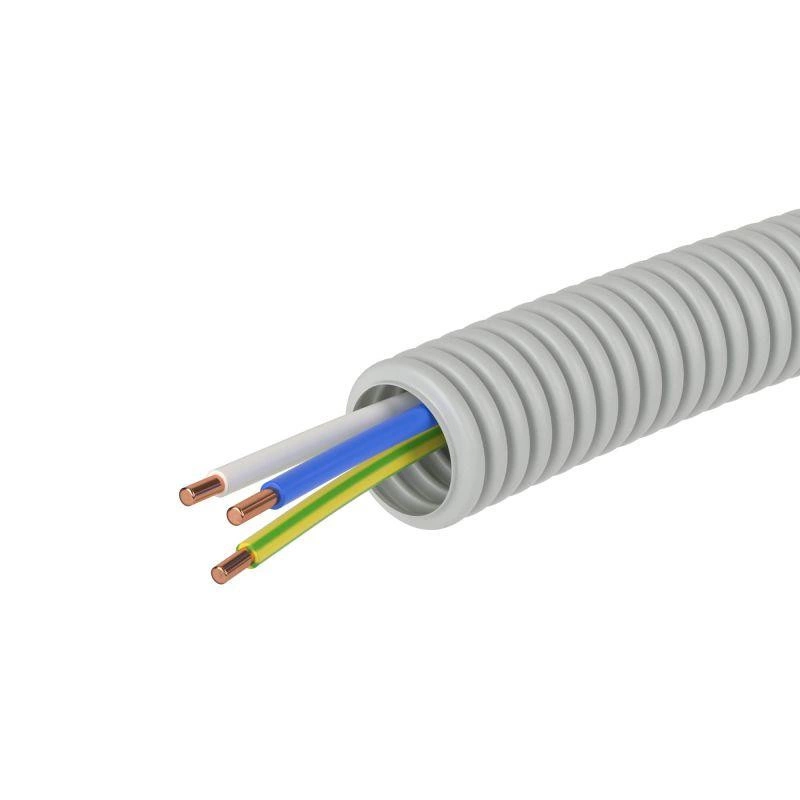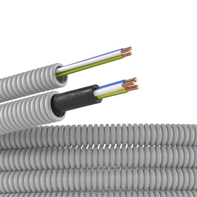 Полное описание: Труба гофрированная ПВХ гибкая d16мм с проводом ПВ-1(ПуВ) 3х1.5 РЭК ГОСТ+ сер. (уп.25м) DKC 9P91625