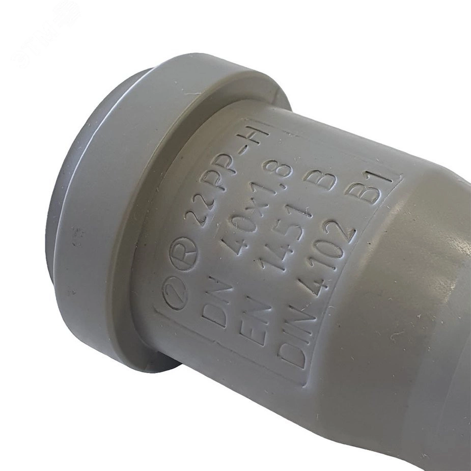 Цвет - серая пыль RAL 7037, на внешней стенке трубы нанесена сантиметровая линейка|Уплотнения - запатентованное тройное SBR (NBR)|Химическая стойкость - применяется для агрессивных сред в диапазоне от pH 2 до pH 12|Выдерживаемое давление системы - 0,