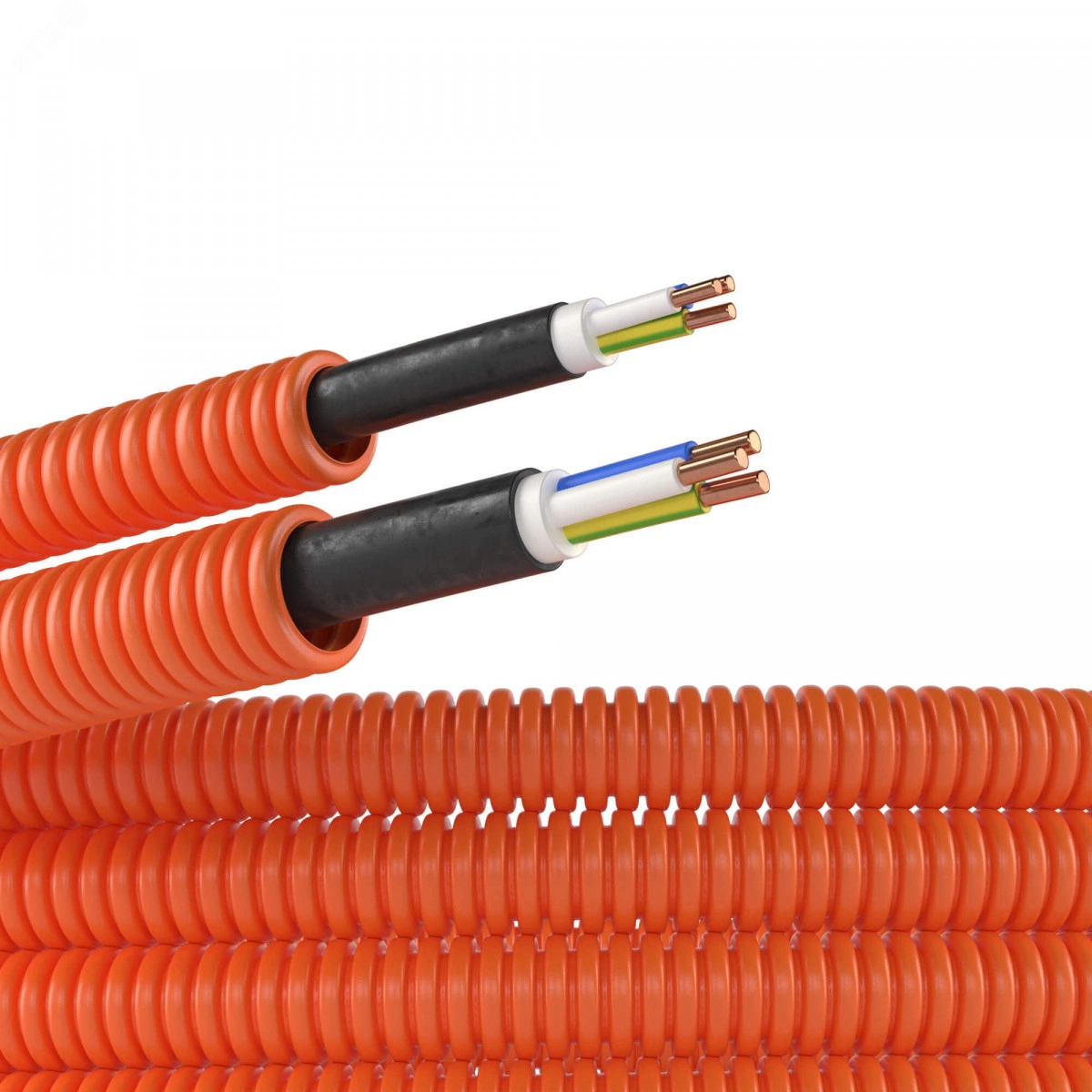Труба ПНД гибкая гофрированная д.16мм с кабелем ГОСТ+ ВВГнгLS 3х1.5(100м) оранжевая