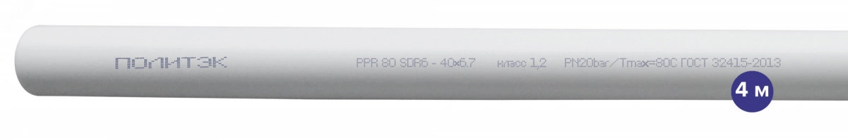 Трубы полипропиленовые предназначены для эксплуатации в составе инженерных систем холодного и горячего водоснабжения (ХВС/ГВС) жилых, административных и промышленных зданий с номинальным давлением до 10/20 Бар . Трубы также используются в различных технологических системах для перекачки жидкостей, не вступающих в реакцию с полипропиленом.