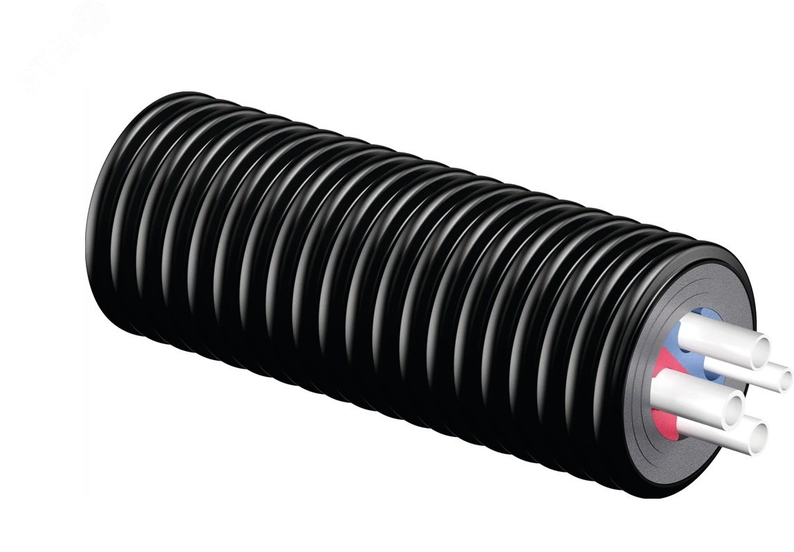 Четыре трубы в одном защитном гофрокожухе, две трубы - подающая и обратная системы отопления, 3я труба - подающая ГВС, 4я труба - циркуляция ГВС. Цветная сердцевина между трубами. Трубы для отопления имеют антидиффузионный слой от проникновения кислорода EVOH. Несущие трубы выполнены из сшитого полиэтилена PE-Ха.Теплоизоляция многослойная, эластичная, устойчивая к старению, выполненная из вспененного сшитого полиэтилена с закрытыми порами. В центре предусмотрена теплоизоляционная двухцветная сердцевина в форме ''собачьей кости'' для исключения путаницы и предотвращения теплообмена между трубами. Защитный гофрированный кожух из полиэтилены высокой плотности. Область применения - подземная бесканальная прокладка в системах теплоснабжения и горячего водоснабжения. Срок службы не менее 50 лет при температурных режимах, указанных в ГОСТ 32415-2013, таблица 5, классы 1, 2, 4 и 5.