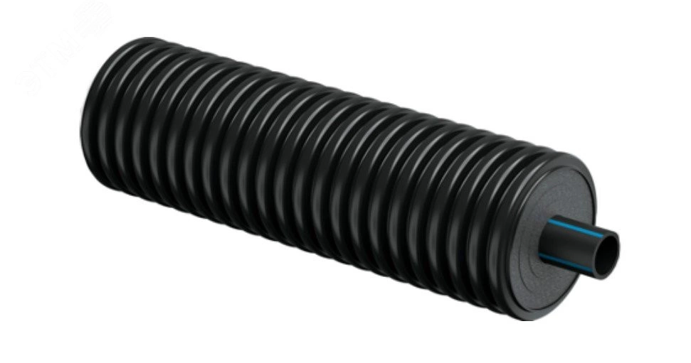 Труба с самокомпенсацией температурных удлинений|Теплоизоляция многослойная, устойчивая к старению, эластичная|Защитный гофрированный кожух изготавливается из полиэтилена высокой плотности HDPE|Соответствует требованиям стандарта ATV-DVWK-A 127 для у