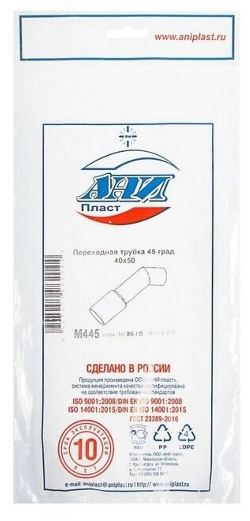 Трубка переходная АНИ 45 градусов 40 х 50