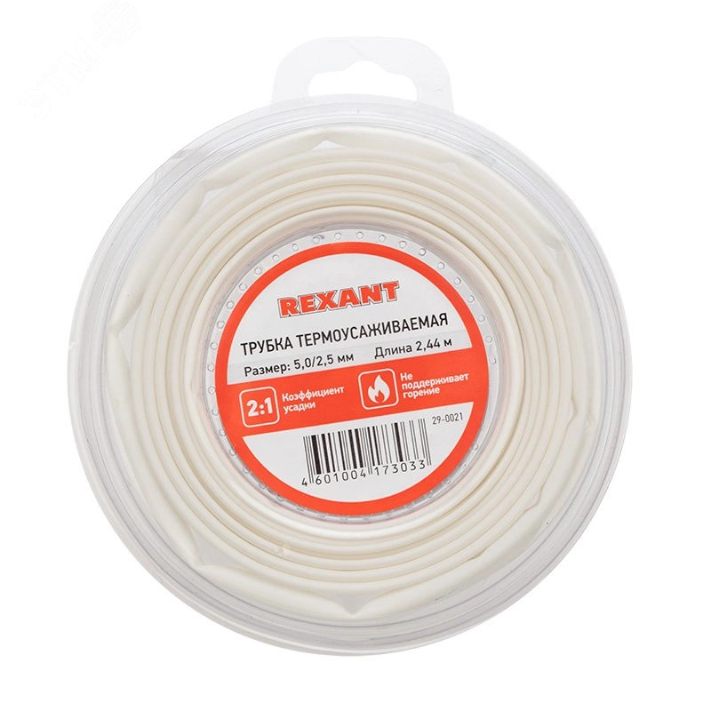 Трубка термоусаживаемая 5,0 2,5 мм белая, ролик 2,44 м