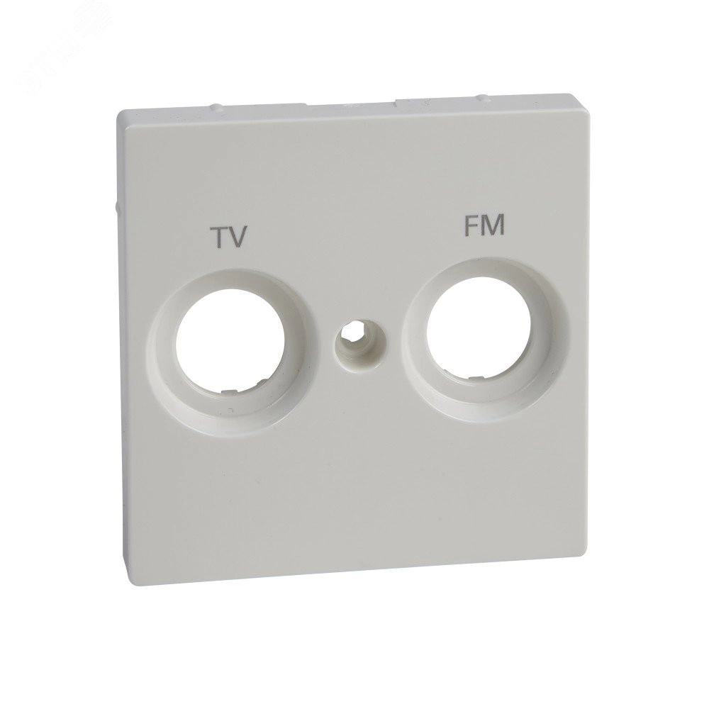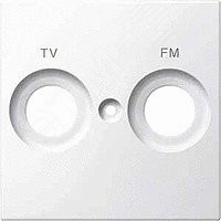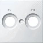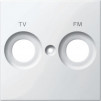 Центральная плата с маркировкой FM И TV ПОЛ-белый. Серия продукта - Merten System M, наименование - M-Star, M-Elegance, M-Plan glass, M-Smart, M-Plan, System M, M-Arc, назначение изделия - розетка спутникового/наземного ТВ, код цвета - RAL 9010.