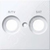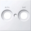 Центральная плата с маркировкой R/TV и SAT. Серия продукта - Merten System M, наименование - M-Plan glass, M-Smart, M-Star, M-Arc, M-Elegance, M-Plan, System M, назначение изделия - розетка спутникового/наземного ТВ, код цвета - RAL 9016.