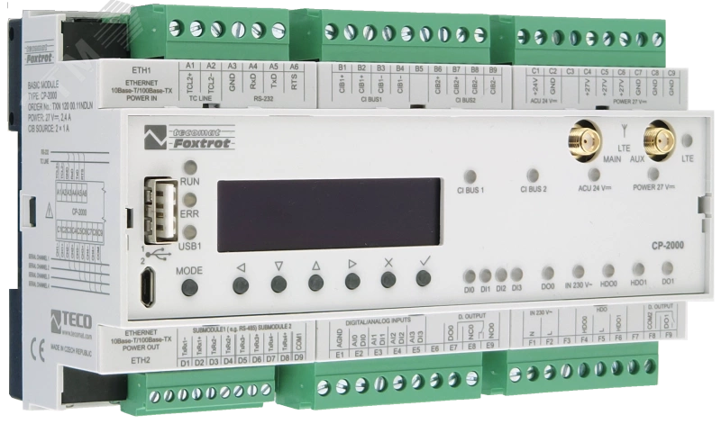 В нашем интернет-магазине вы можете купить Центральный контроллер CP-2000 LTE CP-2000, CPU/1core, 2xETH100/10, LTE, 128kB databox, LCD 20mm, 1x RS232, CH1-4, 4xAI/DI, 3xDI/230VAC, 2xRO, 2xCIB в Екатеринбурге, артикул TXN 120 00.11NDLN. Чтобы уточнить условия оплаты, доставки и действующие скидки на товар, свяжитесь с нашим менеджером по телефону +7 (343) 266-30-88.