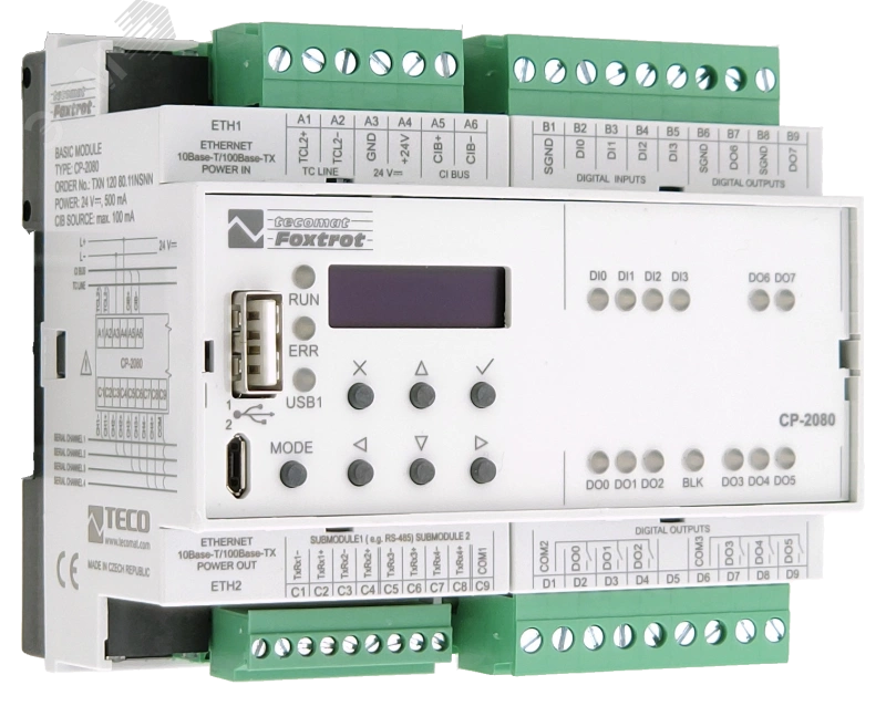 Полное описание: Центральный контроллер CP-2080 CP-2080, CPU/1core, 2xETH100/10, 128kB databox, LCD-7mm, CH1-4, 4x D I(GO), 6x RO, 2x DO, 1xCIB