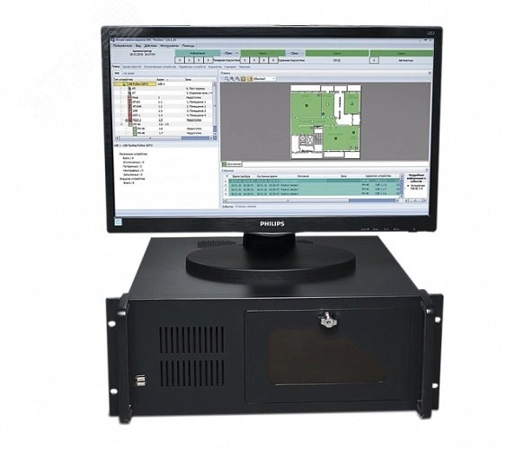 Центральный прибор индикации и управления для системы RS-485 или R3-Link. Состав: блок системный, монитор 21,5 дюйм, пульт индикации и управления, блок АВР. Ключ HASP Pro для ПО FireSecв комплекте.