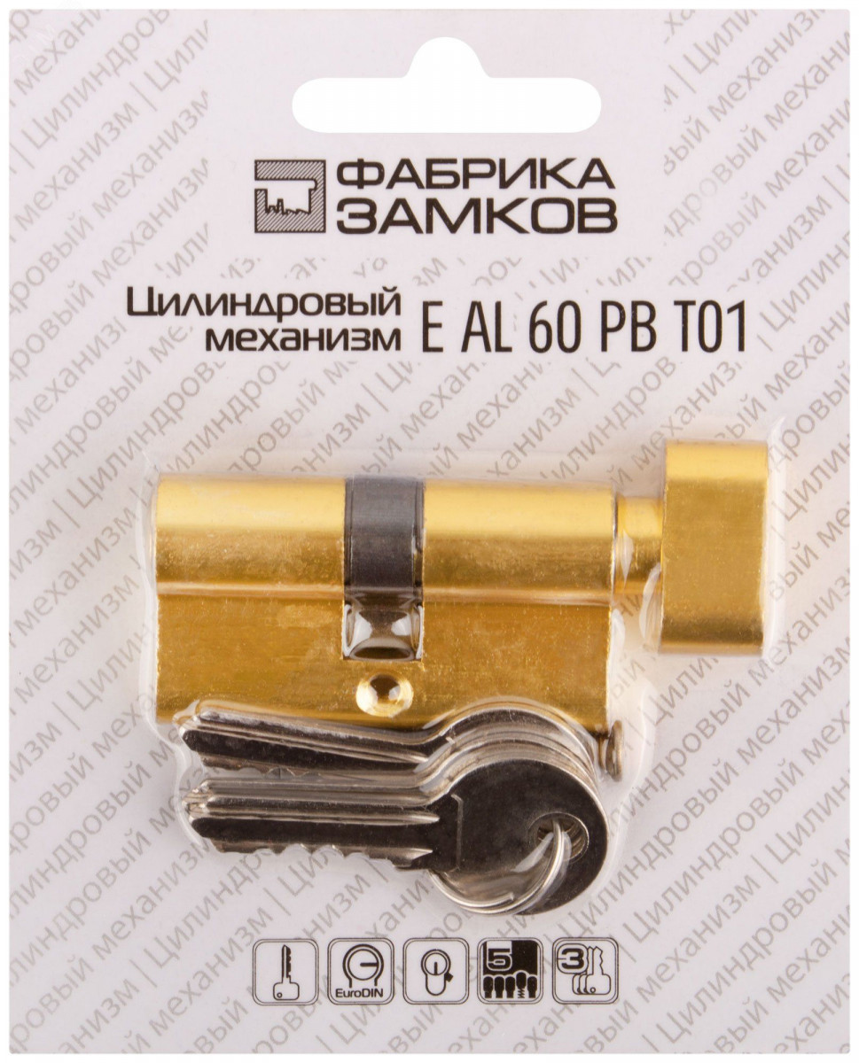 Цилиндровый механизм ''Фабрика замков'' 60 мм, ключ-завертка, латунь