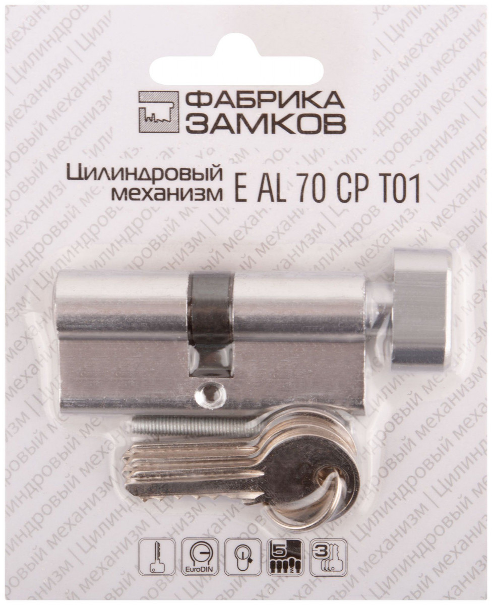 Цилиндровый механизм ''Фабрика замков'' 70 мм, ключ-завертка, хром