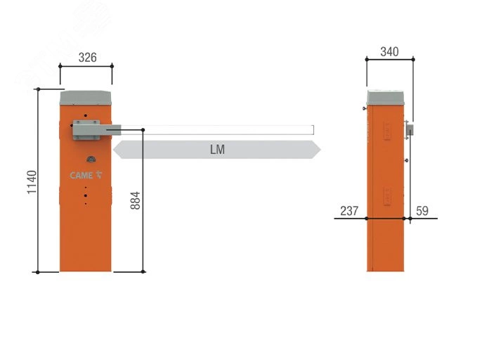 Тумба шлагбаума из оцинкованной и окрашенной сталис возможностью установки дополнительных принадлежностей для проездов до 4 м, класс защиты IP54