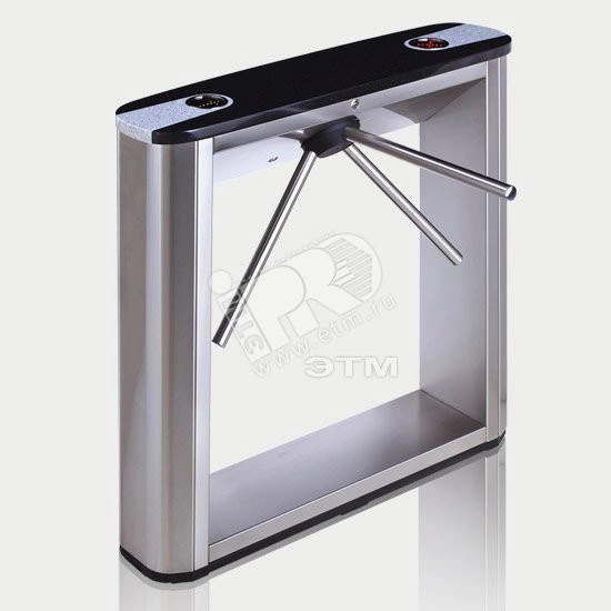 Крышка стойки этой модели турникета радиопрозрачна, что обеспечивает возможность скрытой установки бесконтактных считывателей системы контроля доступа внутри стойки. Рабочая зона считывателей выделена на крышке цветом. В крышку встроены светодиодные блоки индикации с яркими пиктограммами, служащие для указания направления прохода и индикации состояния турникета - зеленая стрелка показывает направление разрешенного прохода, открыт в заданном направлении, красный крест показывает, что проход запрещен. Дополнительно предусмотрены выходы для подключения выносных индикаторов направления прохода. Управление турникетом может осуществляться - при управлении от СКУД турникет поддерживает два режима управления – импульсный и потенциальный. Возможность выбора режима управления обеспечивает корректную работу турникета в СКУД любых производителей, и в частности, позволяет применять для управления замковые контроллеры, выходы которых поддерживают потенциальный режим управления.