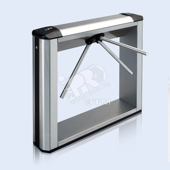 Тумбовый турникет с автоматическими преграждающими планками Антипаника. В корпус турникета встроены два считывателя, имеющие интерфейс связи с контроллером Wiegand.