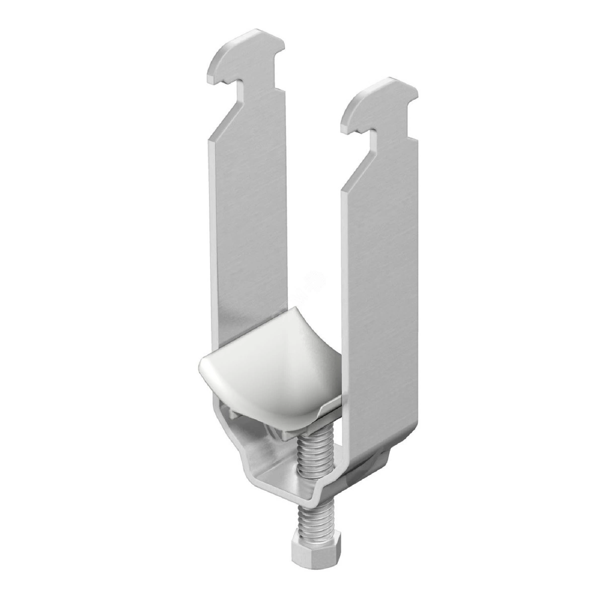 Также подходит для всех C-образных профильных реек с шлицем шириной 16 - 17 мм, скоба и болт из нержавеющей стали, пластина из полипропилена, не содержит галогенов, светло-серый RAL 7035.