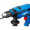 Производительная дрель для различных работ (сверление, заворачивание, перемешивание). Функция сверления с ударом позволяет выполнять отверстия в кирпиче и легком бетоне. Электронная регулировка оборотов в широком диапазоне расширяет возможности использования изделия. Изменение частоты вращения степенью нажатия на выключатель обеспечивает как плавное начало сверления во избежание увода сверла, так и быстрое сверление. Надежная конструкция на шариковых подшипниках для минимального биения шпинделя. Ударные шестерни из хромового сплава продлевают срок жизни ударного механизма. Изменение направления вращения (реверс) позволяет использовать изделие в качестве шуруповерта. Надежное удержание дрели благодаря обрезиненной основной и удобной дополнительной рукояткам. Фиксация выключателя во включенном положении для удобства при длительных работах.