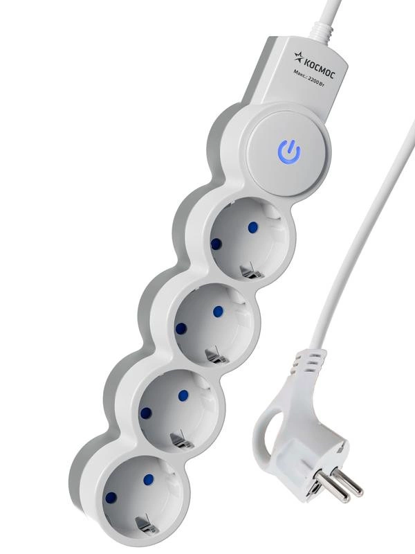 Полное описание: Удлинитель 4х3м ПВС 3х0.75 с защ. шторк. с заземл. IP20 с выкл. 220В 10А 2200Вт бел. КОСМОС YKsm3m-4g-Z-V10A-W